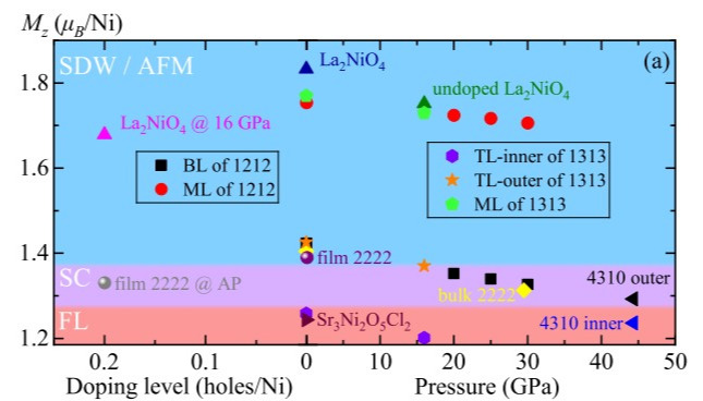 针对近年新发现的Ruddlesden-Popper(RP) 镍基非常规超导家族,中国人民大学物理学院贺荣强教授、卢仲毅教授团队及其合作者,利用第一性原理密度泛函理论以及动力学平均场理论,针对RP镍基材料的超导机制,关联电子结构以及自旋涨落等进行了一系列的理论研究。核心发现:·澄清非常规超导本质·明确电子关联性来源·描述关联电子结构·总结镍基超导的规律·预言新的镍基高温超导电声耦合计算表明高压双层La3Ni2O7中的电声耦合很弱,不...